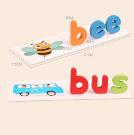 PRESCHOOL EDUCATIONAL TOYS WOODEN ALPHABET LETTER ENGLISH WORDS SPELLING GAME WITH CARDS