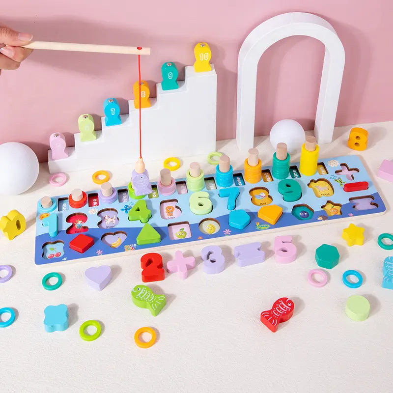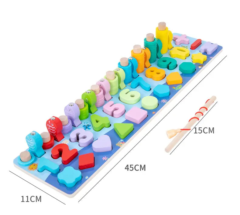 Turn learning into a fun hands-on adventure with this Magnetic Wooden Educational Toy Set, specially designed to teach numbers, shapes, and basic math symbols through interactive play. Featuring vibrant wooden pieces and a magnetic fishing rod, kids can “catch” and collect shapes while developing fine motor skills, number recognition, and early math awareness.