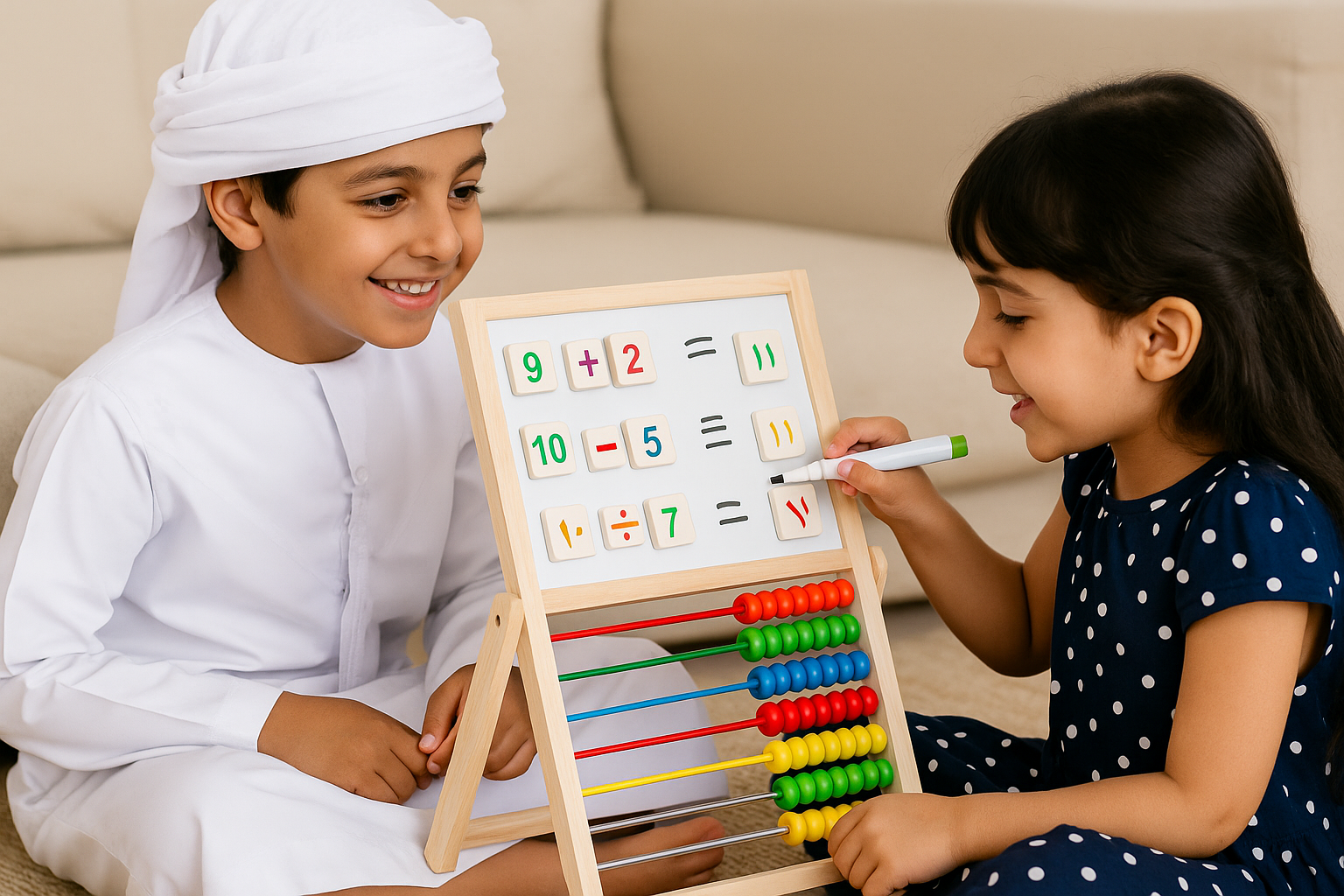 Abacus Beads: Brightly colored beads for practicing counting, addition, and subtraction.